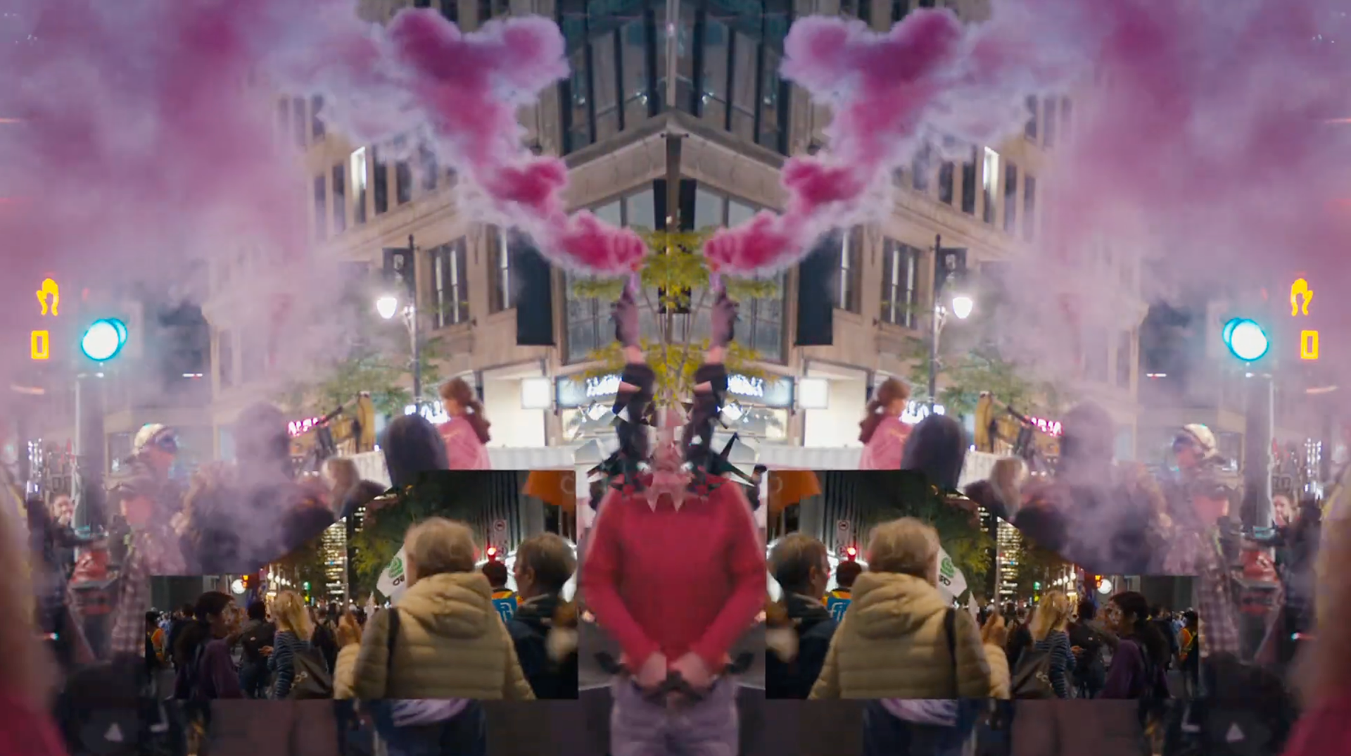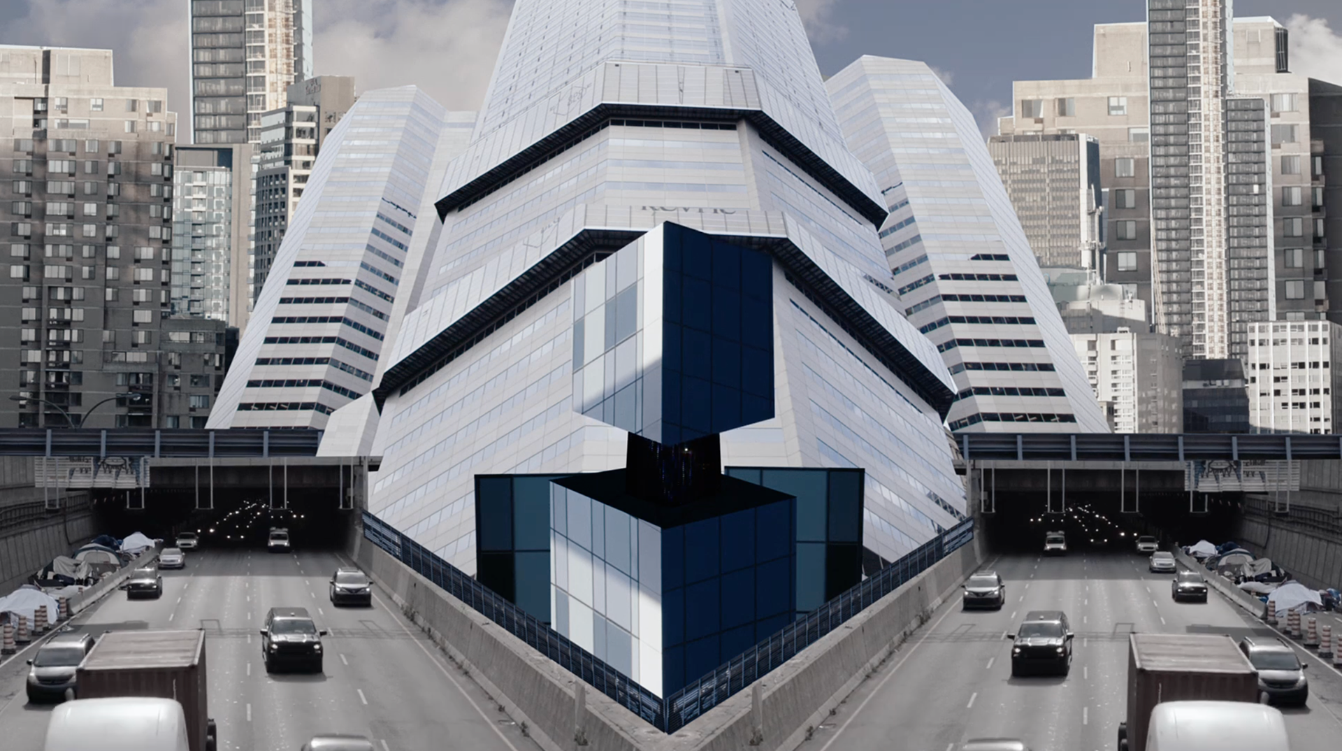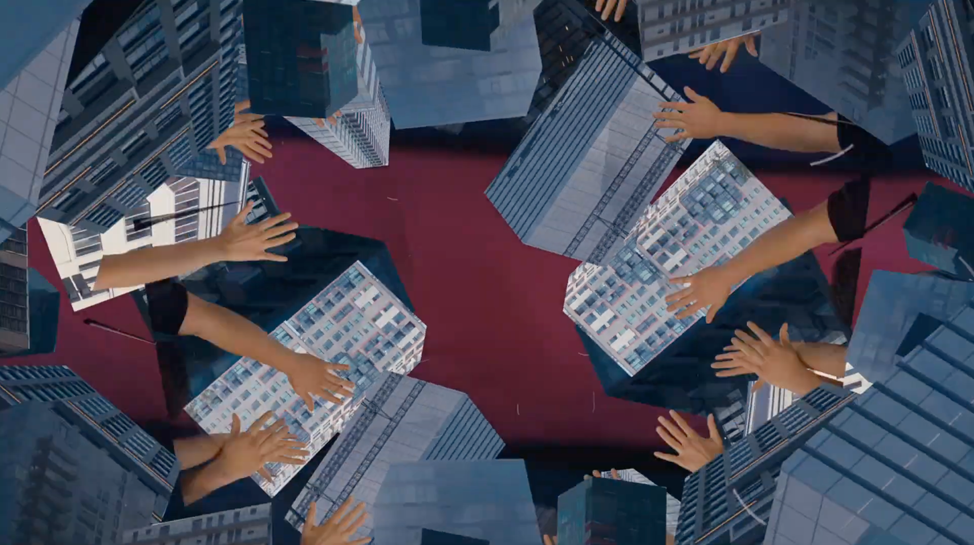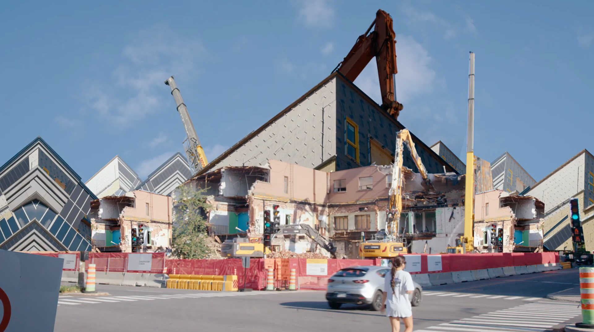 Les Montréalais profitent des parcs, des balcons, des cafés et des pistes cyclables, partageant une diversité culturelle riche. Mais un camion rempli de cônes orange perturbe les quartiers, laissant derrière lui des chantiers qui transforment la ville. Le patrimoine bâti disparaît, remplacé par des bâtiments si hauts qu’ils plongent Montréal dans l’ombre. À l'ère cyberpunk, les rues sont dominées par les tours IA qui effacent les derniers vestiges du passé. Une révolte réclame un changement radical. Quand tout s'effondre, la nature reprend ses droits. Parmi les ruines, une communauté solarpunk émerge où la vie s’adapte à son environnement.